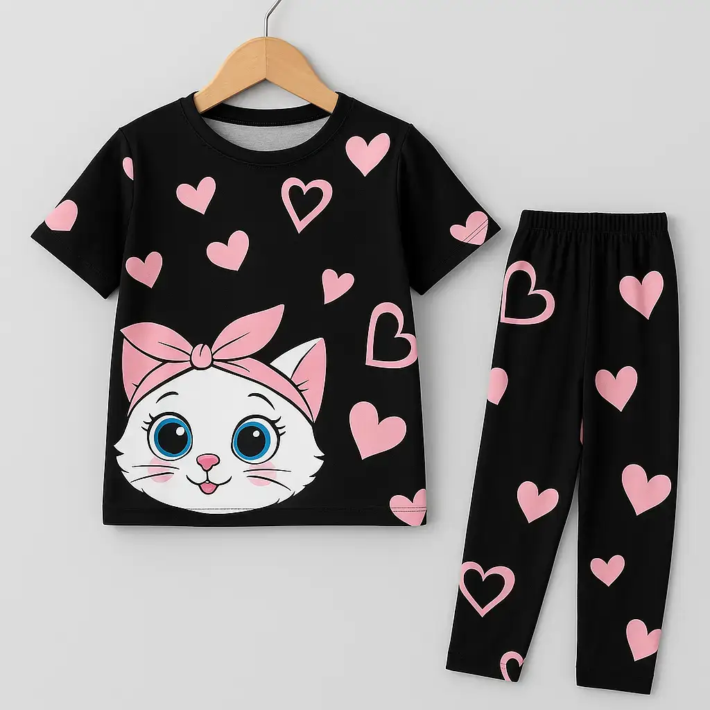 Looking for a gift-ready option? This black cat kids girl T-Shirt set is a cute, trendy kidswear choice for birthdays and everyday style.