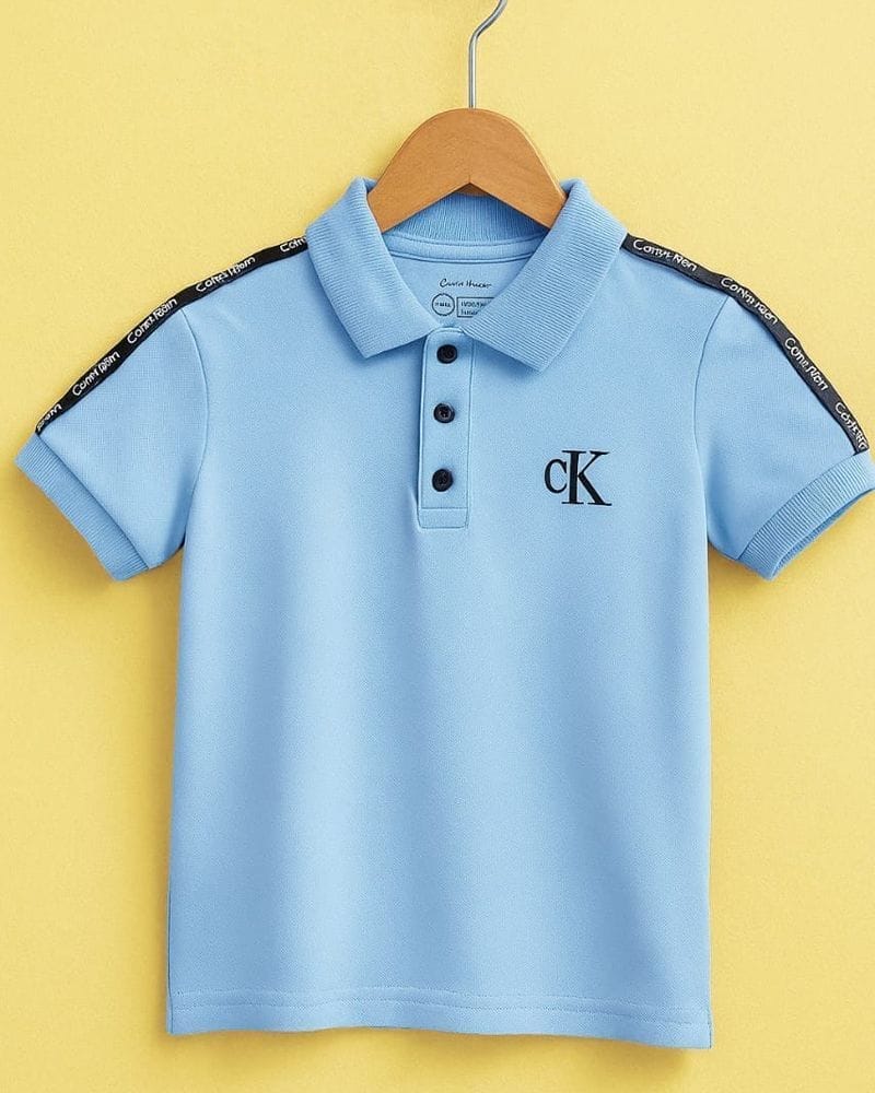 A stylish and breathable light blue polo T-shirt designed for growing boys who love a neat and classy look.