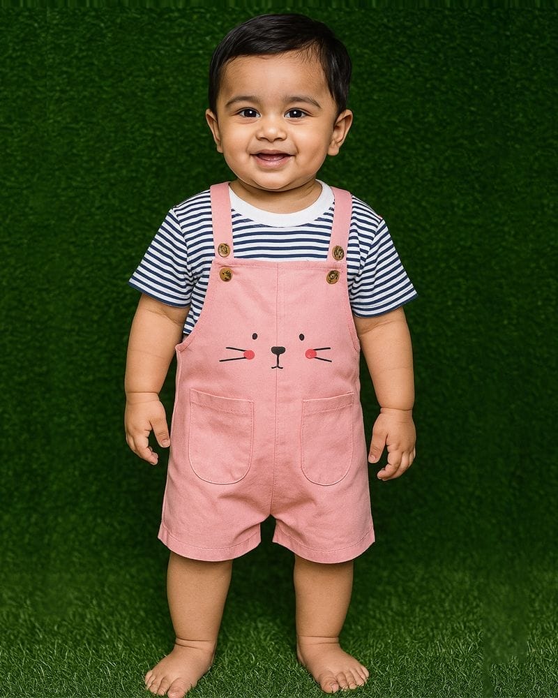Cute Baby Romper Set – Pink Suspender with Striped T-Shirt