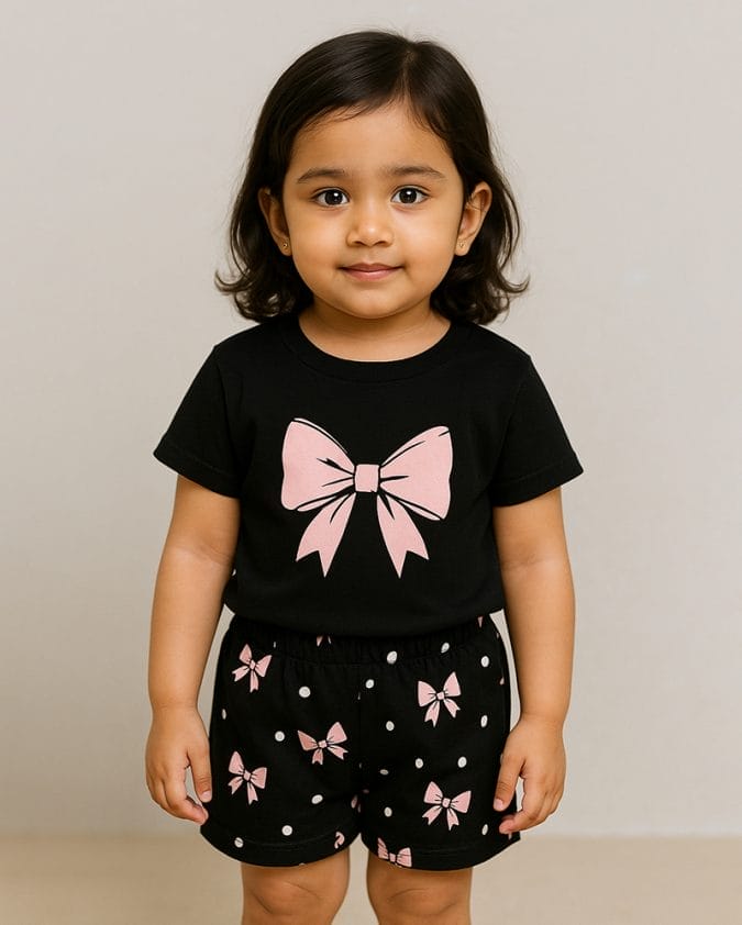Make your baby stand out with this adorable pink suspender romper set! Paired with a navy-white striped tee, it’s perfect for playful comfort and cuteness.