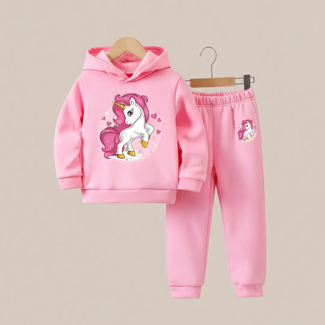 পণ্যের নাম: Kids Winter Hoodie Set – Cute Unicorn Pink