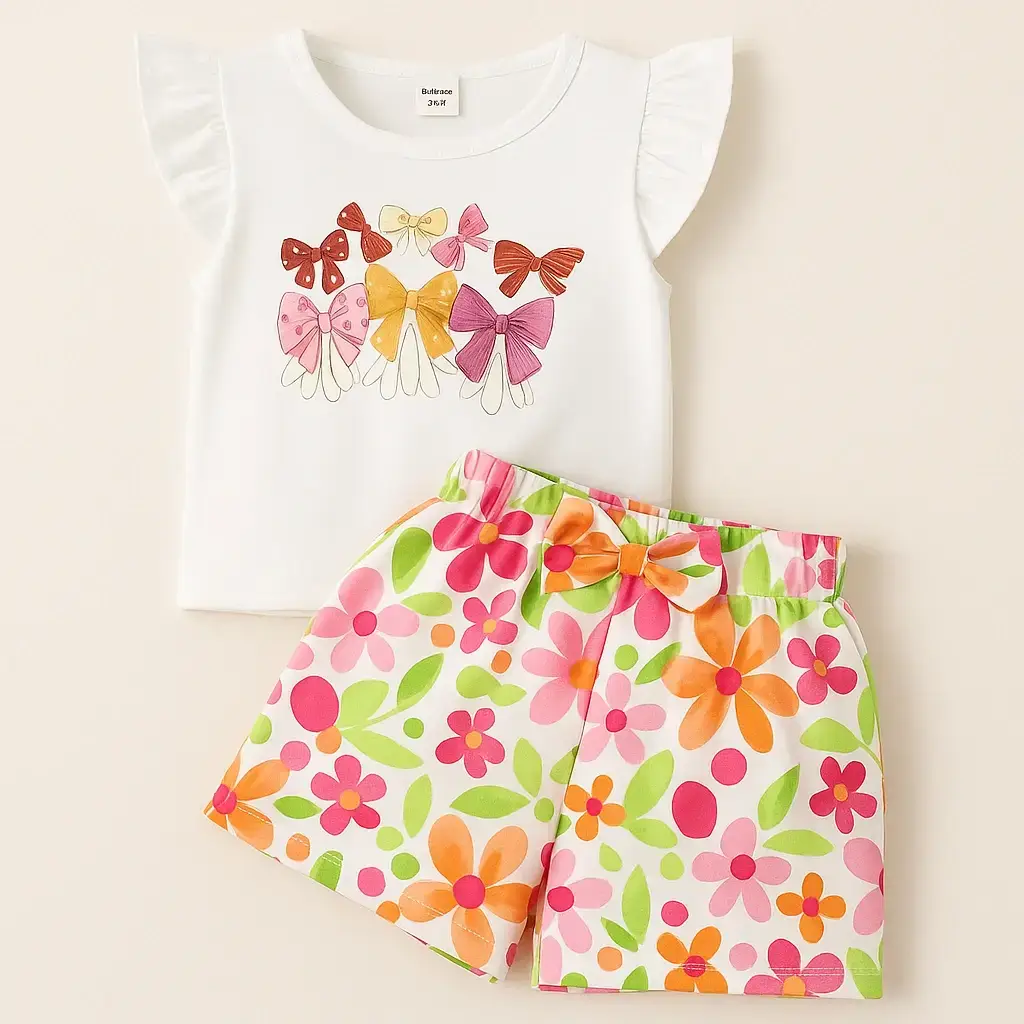 Floral Bow Kids Girl Summer Set – A Perfect Blend of Fashion & Comfort