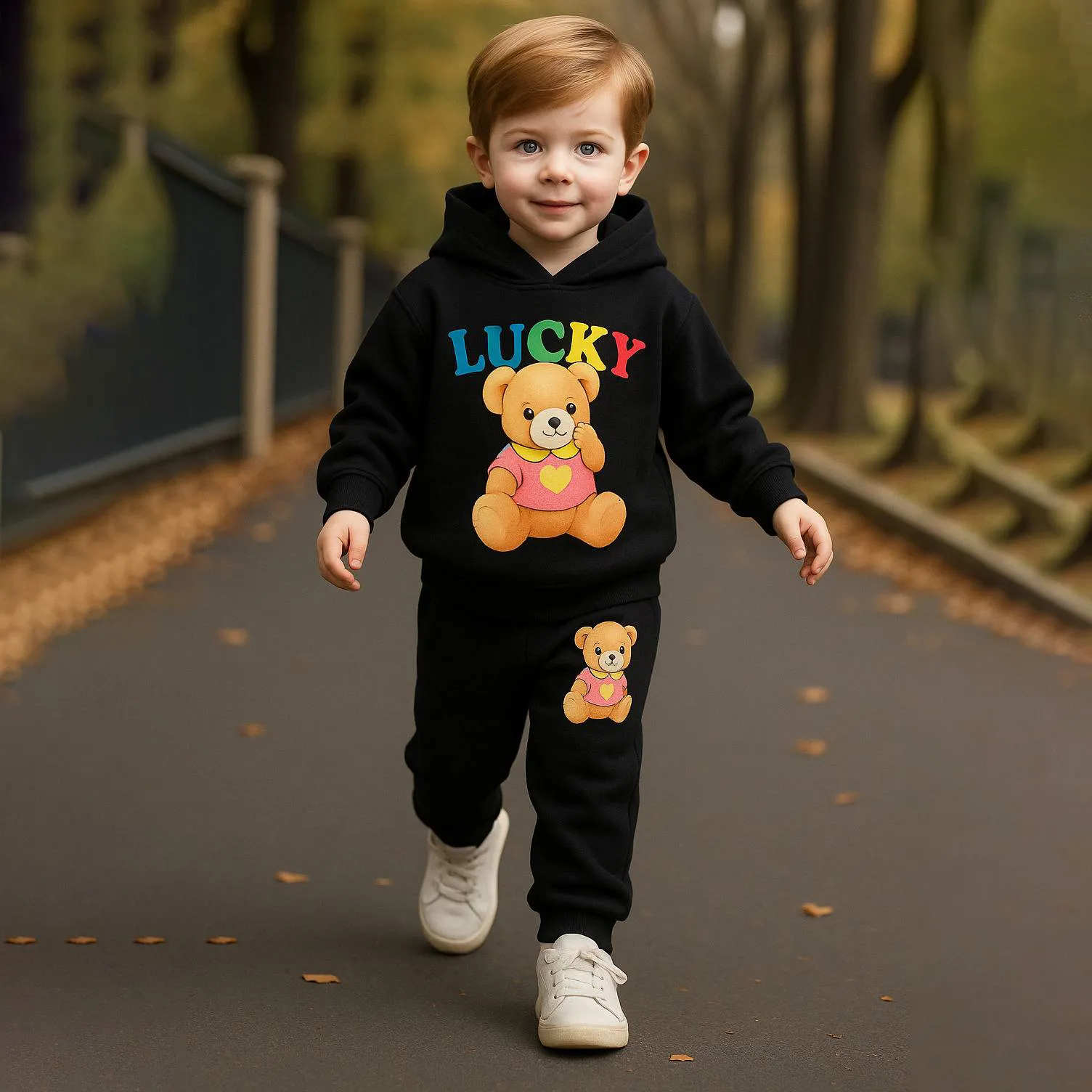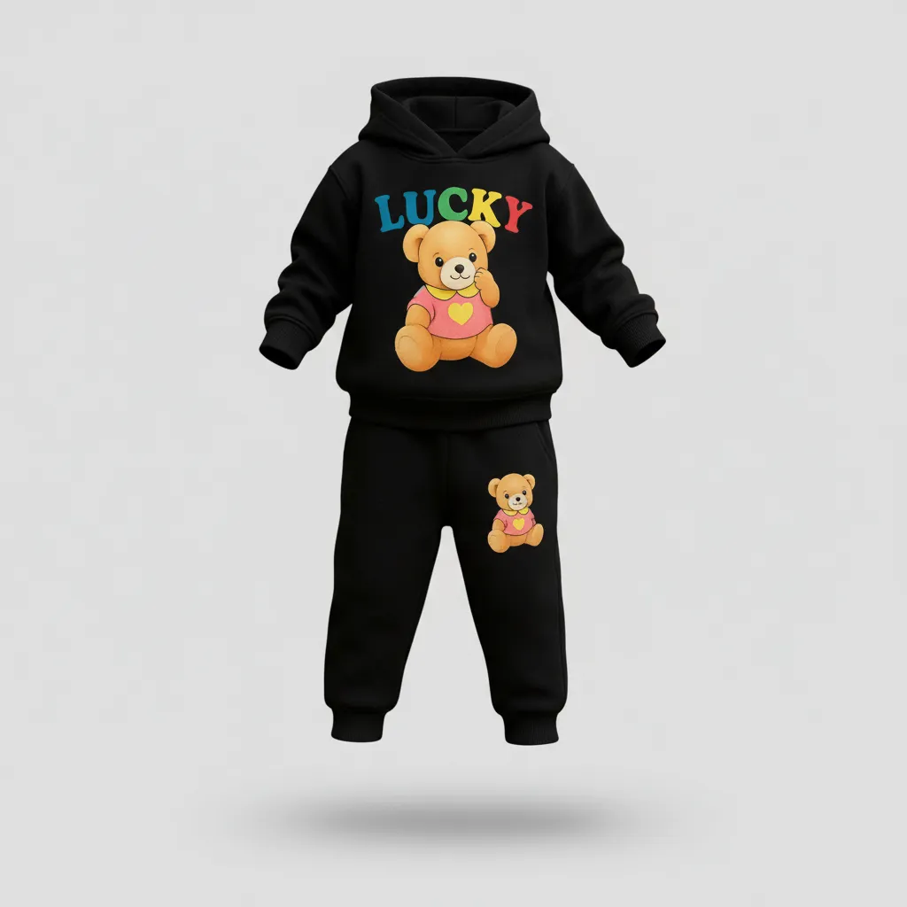 Lucky Teddy Black Kids Winter Hoodie Set হলো শিশুদের জন্য একটি কিউট, আরামদায়ক এবং উষ্ণ শীতকালীন পোশাক সেট, যা শীতের দিনে স্টাইল ও কমফোর্ট একসাথে নিশ্চিত করে।