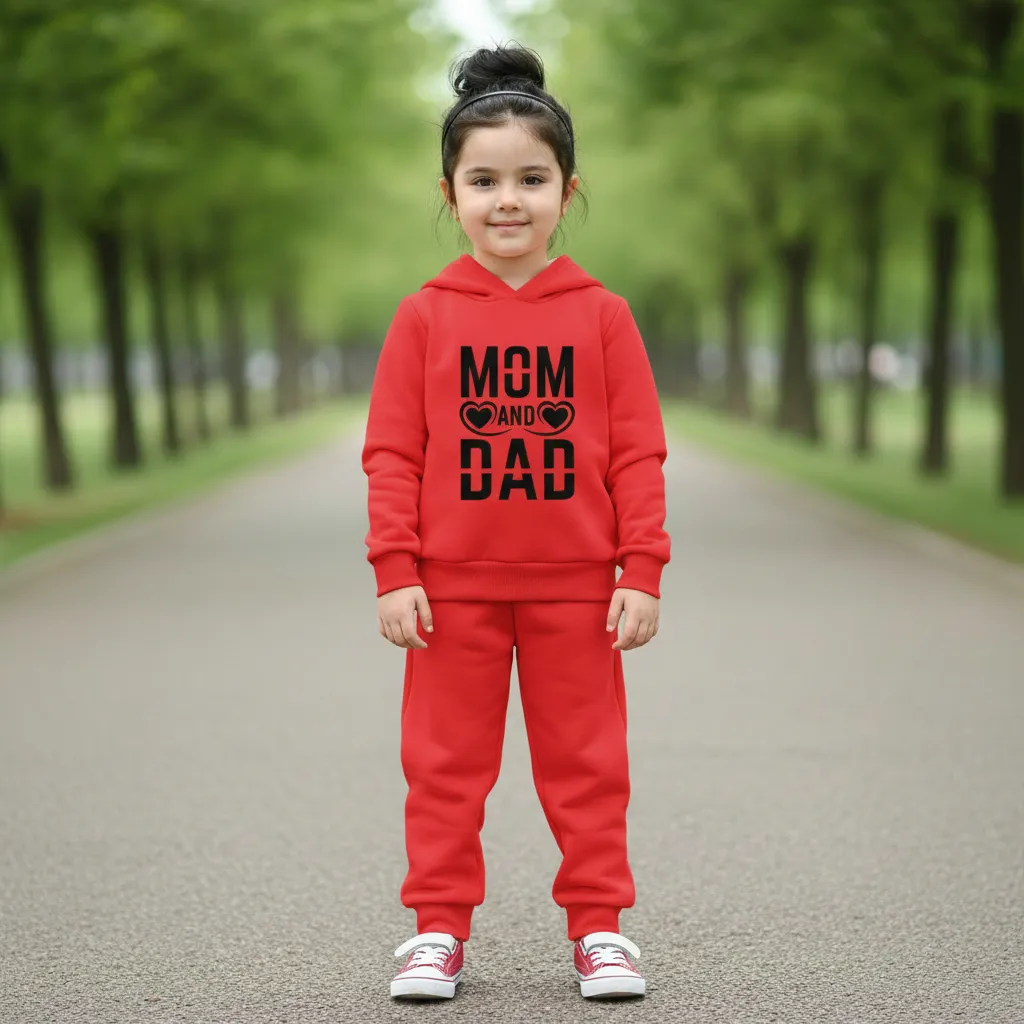 Mom And Dad Red Kids Winter Hoodie Set হলো শিশুদের জন্য একটি আরামদায়ক, উষ্ণ এবং স্টাইলিশ শীতকালীন পোশাক।