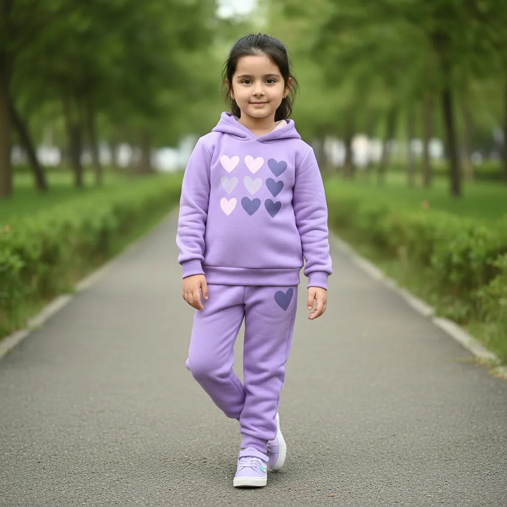 Purple Heart Kids Winter Hoodie Jogger Set হলো বেবি গার্ল ও কিডসদের জন্য একটি সুন্দর, আরামদায়ক এবং উষ্ণ শীতকালীন পোশাক সেট।